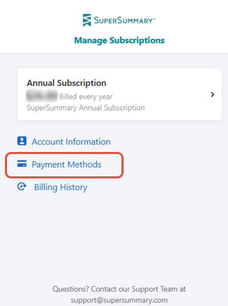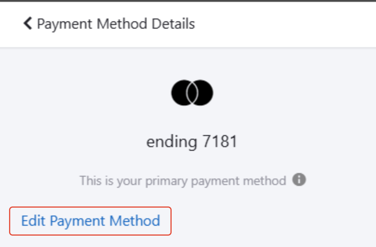 - To edit the primary method, click on it and then click on Edit Payment Method