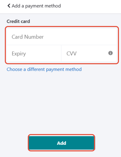 - To add a different payment method, you can do it from that screen or the previous one, clicking on Add New and then Add.